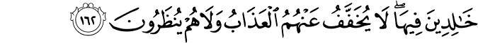 সেই অবস্থায় তারা চিরকাল থাকবে। ওদের শাস্তি একটুও হালকা করা হবে না। কোনো বিরতি দেওয়া হবে না। [আল-বাক্বারাহ ১৬২]