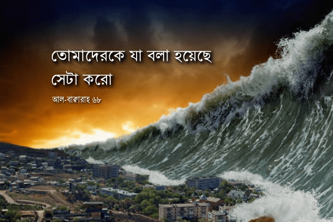তারা বলল, “তোমার প্রভুকে আমাদের হয়ে জিজ্ঞেস করো: এটা কী ধরনের গরু?” মূসা বললেন, “নিশ্চিতভাবে আল্লাহ বলেছেন, ‘এটা বেশি বুড়ো নয়, আবার একদম কম-বয়স্ক নয়, মাঝামাঝি।’ তাই যাও, তা করো, যা তোমাদেরকে আদেশ করা হয়েছে!” [আল-বাক্বারাহ ৬৮]