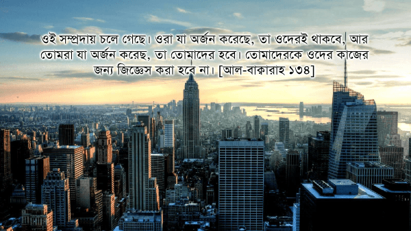 যখন সূর্য গুটিয়ে ফেলা হবে। যখন তারকাগুলো ছড়িয়ে ছিটিয়ে পড়বে। যখন পর্বতমালাকে চলমান করা হবে। যখন পূর্ণ গর্ভবতী উটকে উপেক্ষা করা হবে। যখন বন্য পশুদের একসাথে করা হবে। যখন সাগরগুলো উত্তাল করে ফেলা হবে। যখন আত্মাকে জুড়ে দেওয়া হবে। যখন জীবন্ত পুতে ফেলা শিশু কন্যাকে জিজ্ঞেস করা হবে: কোন অপরাধে তাকে হত্যা করা হয়েছে? যখন আমলনামা প্রকাশ করা হবে। যখন আকাশের আবরণ তুলে ফেলা হবে। যখন জাহান্নামের তীব্র আগুনকে ভীষণভাবে প্রজ্বলিত করা হবে। যখন জান্নাতকে কাছে নিয়ে আসা হবে। তখন প্রত্যেকে জেনে যাবে: সে কী নিয়ে উপস্থিত হয়েছে। —আত-তাকউইর ১-১৪